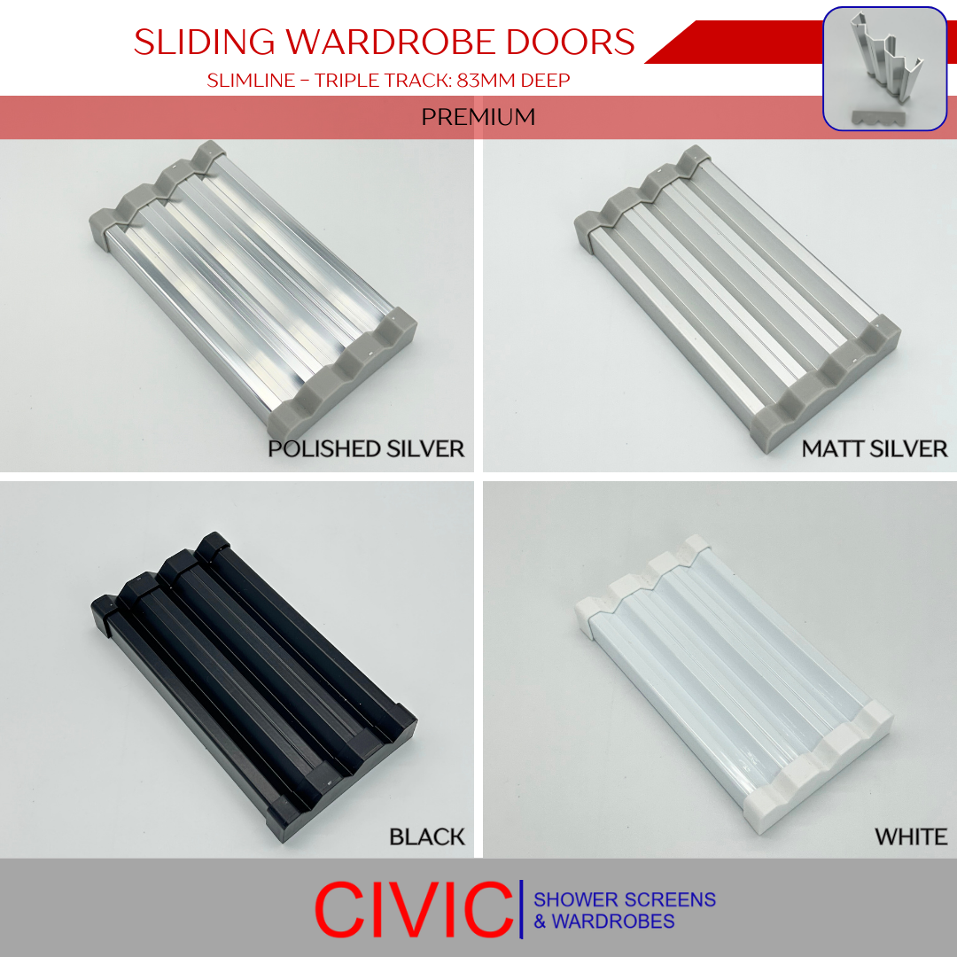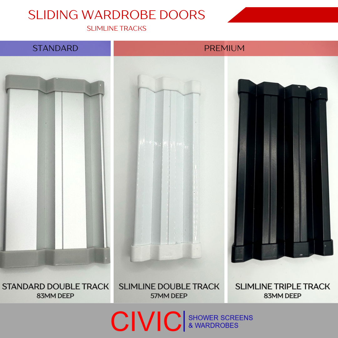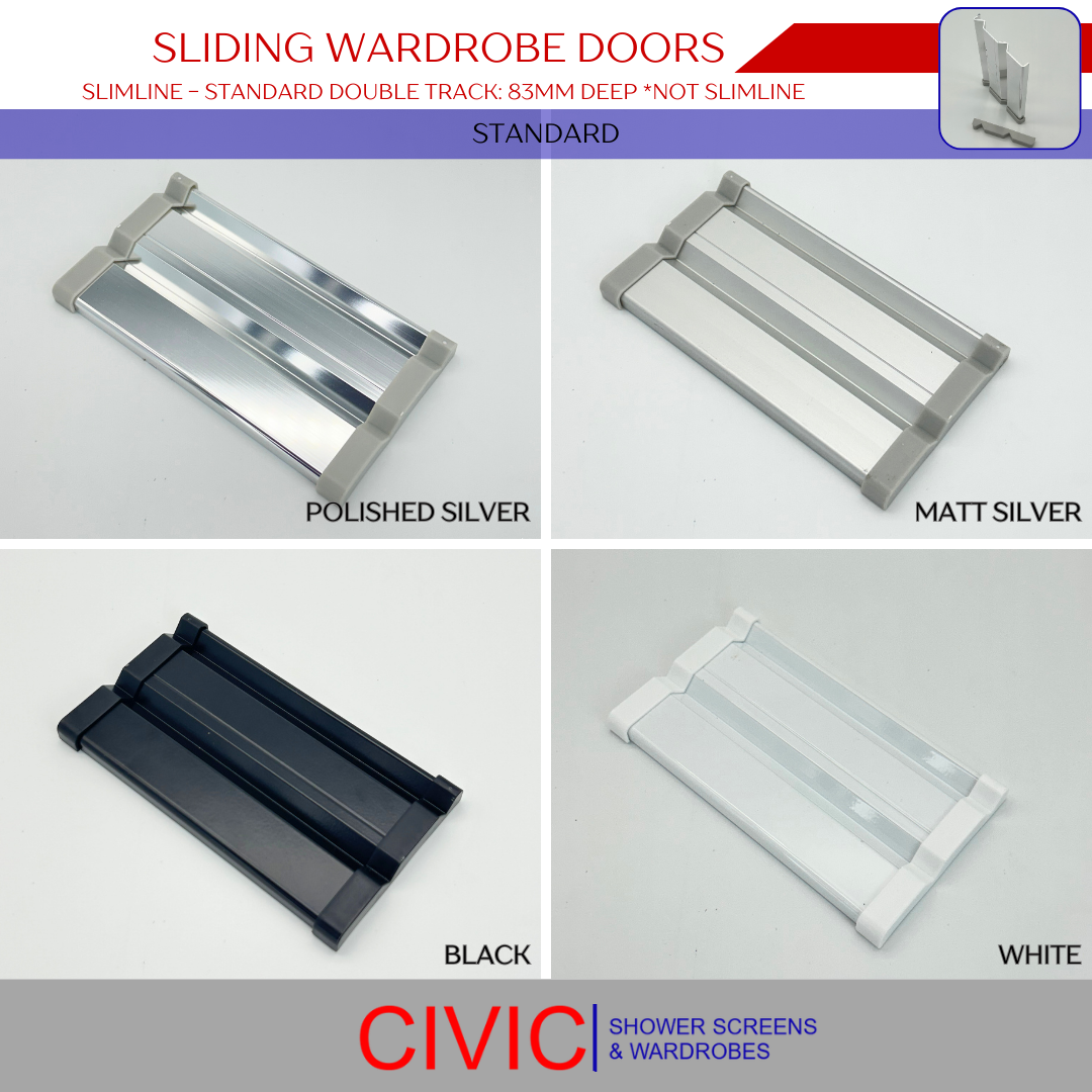 • These track options are for slimline doors, however, framed and frameless doors have their own unique track types to suit the slimmer design. Consider these options carefully to ensure your wardrobe doors glide smoothly and fit perfectly with your space