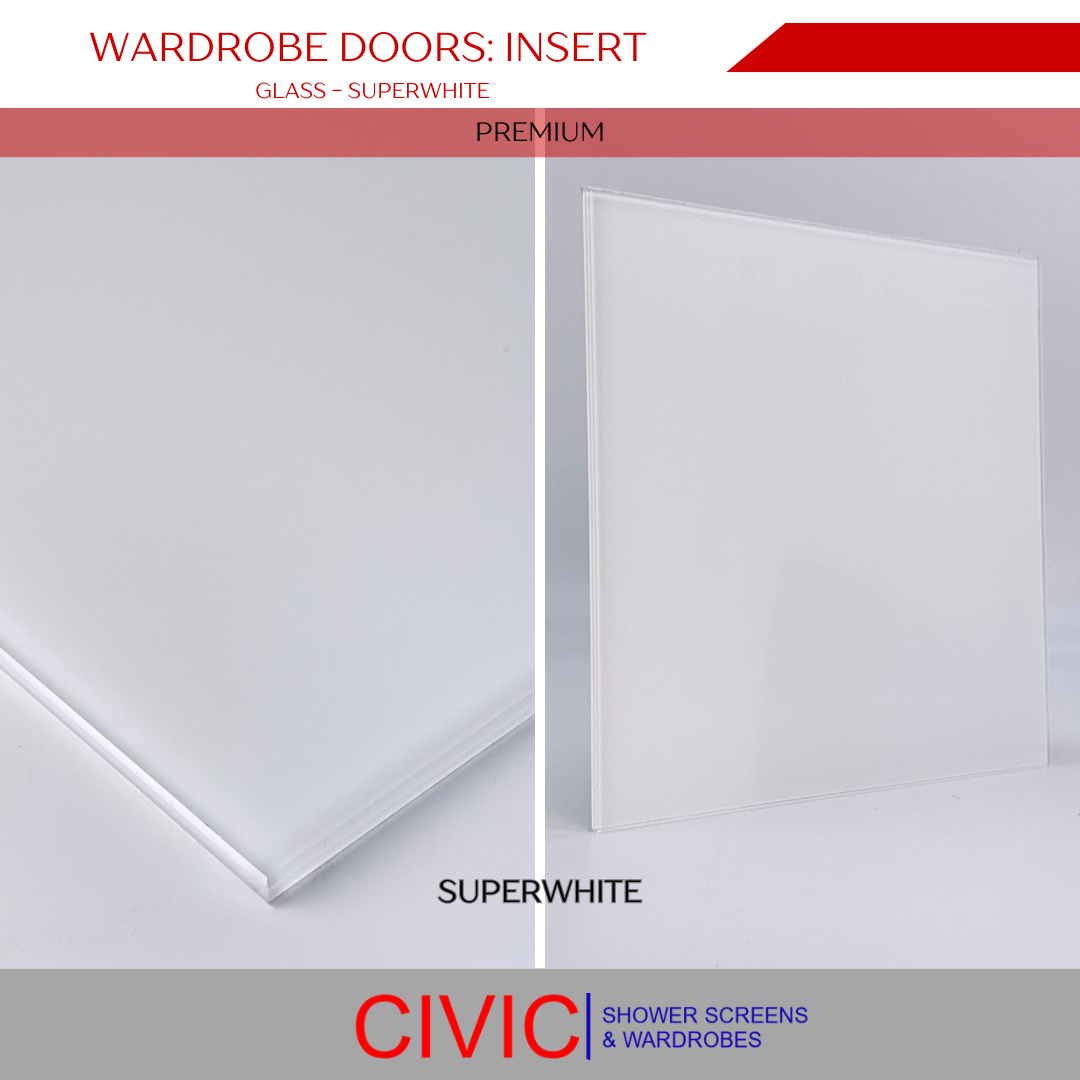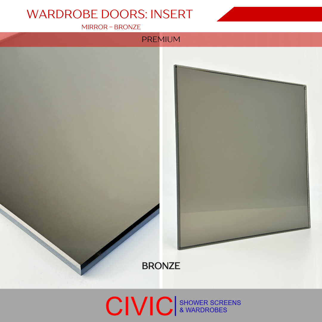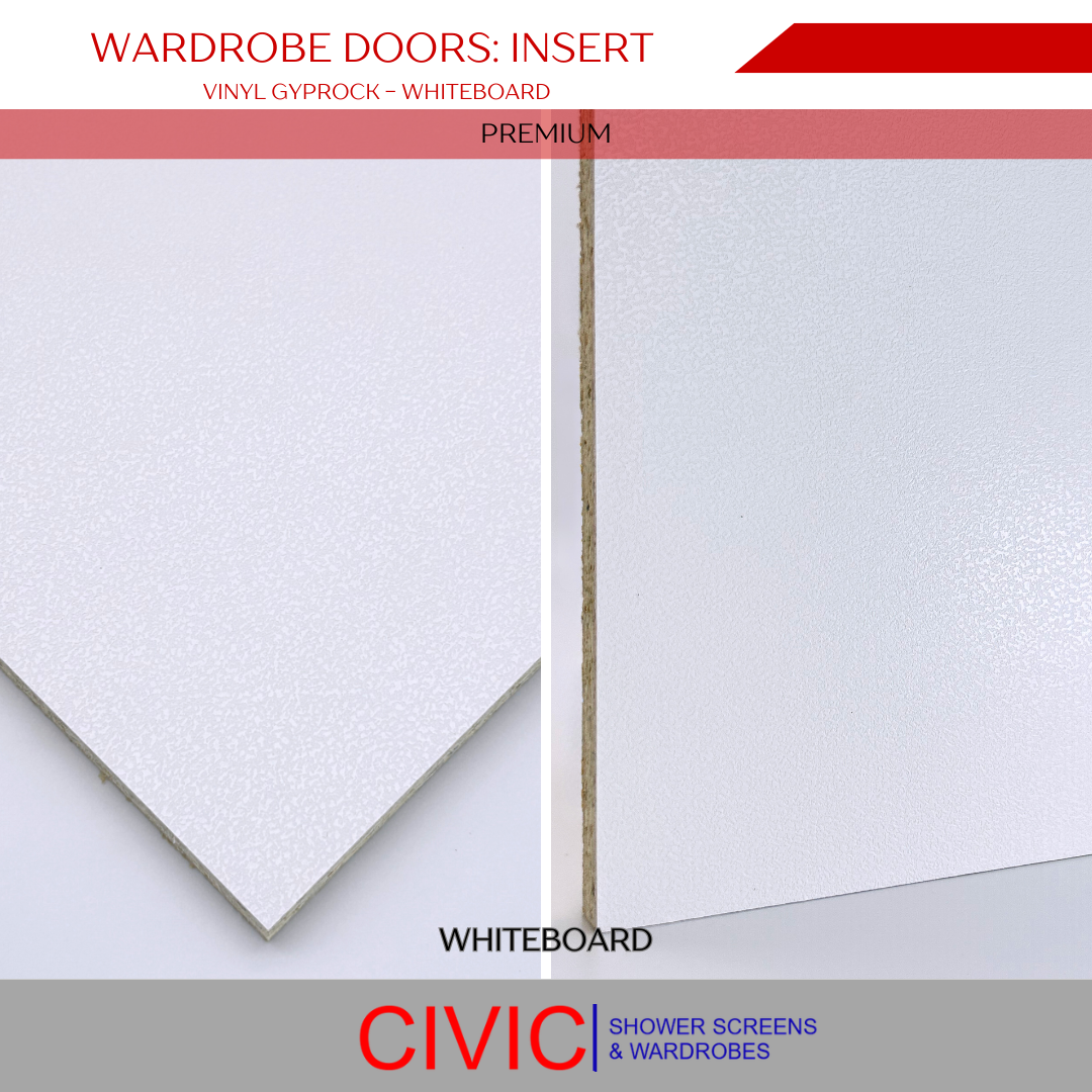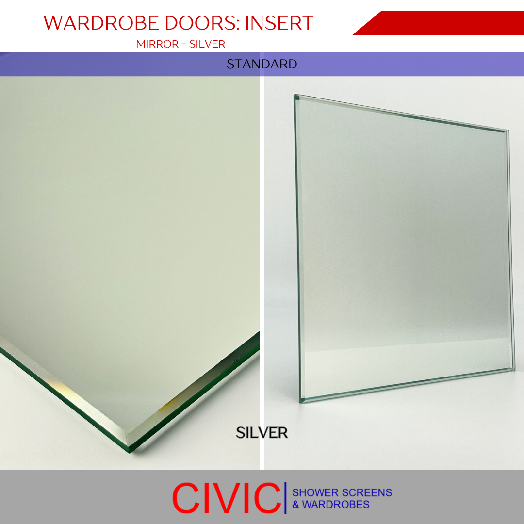 Available in a variety of glass, mirror, vinyl, and MDF board options, including Silver, Grey, Bronze, Superwhite, and Gyprock.